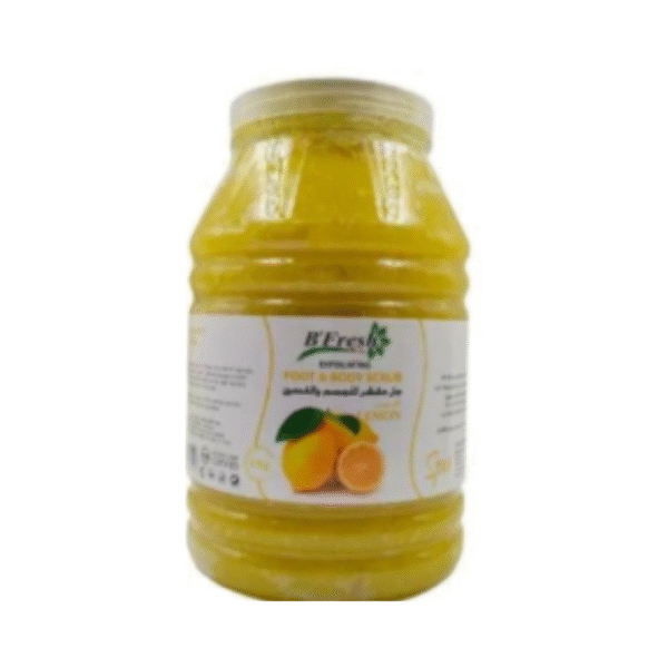 Large size suitable for businesses and salonsAn all-natural body scrub that does not contain any chemicals.Clean the skin well by steam or using a towel dampened with hot water to help lighten the pores of the skin.Then put a sufficient amount on the palm of the hand and rub all parts of the body with it.B`Fresh Lemon Gel ScrubExfoliation and cleaning of dead skinBeing made of gel, it gives softness and wonderful hydration to the skin