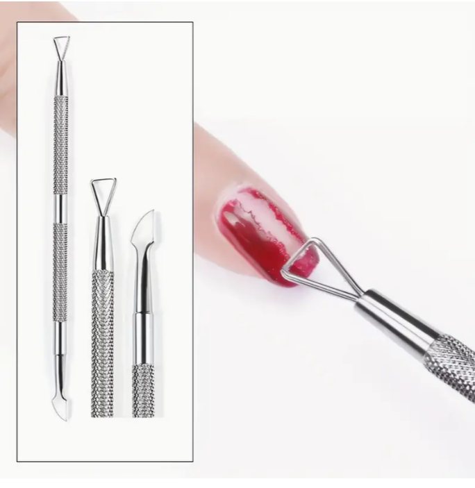 About This item:The cuticle pusher set is made of high-quality stainless steel; Crafted with precise edges to ensure clean and effortless removal of cuticles. And are easy to keep clean and sterile with soap and water or alcoholErgonomic rounded handles with textured for a positive grip, a non-slip handle gives comfortable grip for easy controlUse the flat end of the cuticle pusher to gently push back the cuticles on your nails; Use the trimmer to neaten cuticlesUse the triangle end of the cuticle pusher to peel or remove gel nail polish; Use the pointed end to push down the cuticles at the corners of your nails