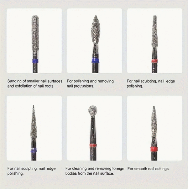 About This Item:Nice nail tools to accomplish varied professional nail jobs,such as carving, engraving, grinding, routing, sharpening, sanding, polishing and so on, suitable for both natural nails and artificial nails. You will get 5 different models of nail drill bits, suitable for nail drill machine, easy to install and replace, bring you convenience.