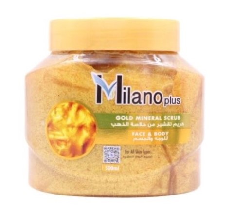 - Milano Plus Gold Scrub is a gentle exfloiant that eliminates impurities and make regeneration of the skin cells.For Face & Body