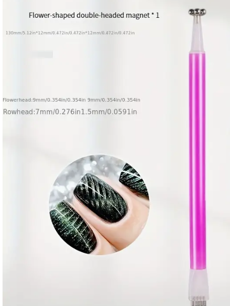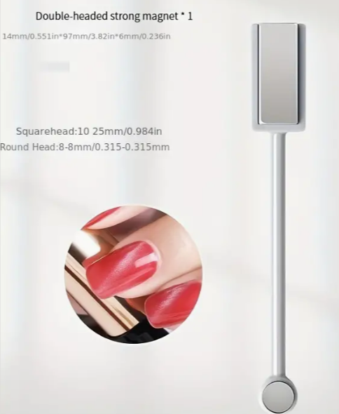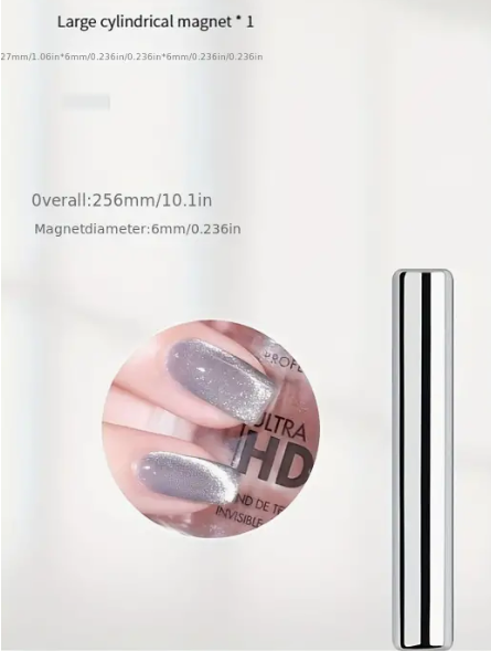 Features:Attaching cat-eye magnetic strips: The cat-eye magnetic strip rod can help attach the cat-eye magnetic strip to the nail, creating a unique light and shadow effect.Easy operation: The cat-eye magnetic strip rod is easy to use, making it easier to attach the magnetic strip and simplifying the manicure process.Specification Material: Magnet +PlasticPackage included:4*Nail Cat EyeStrong Magnet SliceNotice:The cat-eye magnetic strip rod should be used correctly to ensure that the magnetic strip can be attached to the nail.The cat-eye magnetic strip rod should be stored in a dry place and kept away from water to avoid affecting the usage effect.