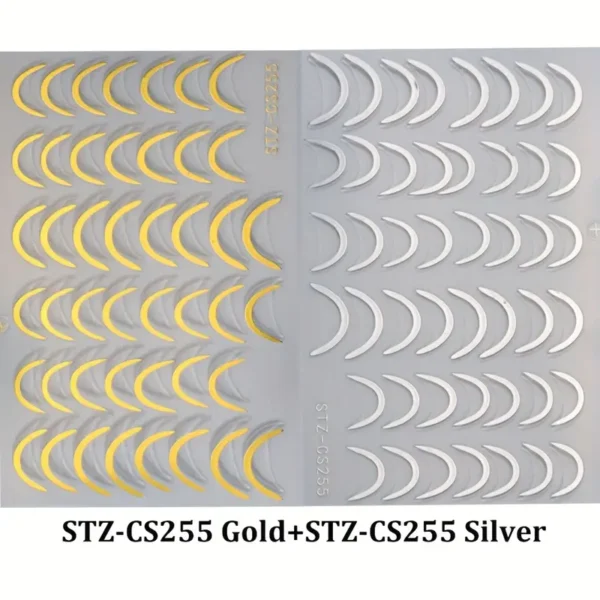 Stickers 3D Nail Art French Tips Swirl Stripe Line – SLIVER And GOLDEN – 2 Set pcs